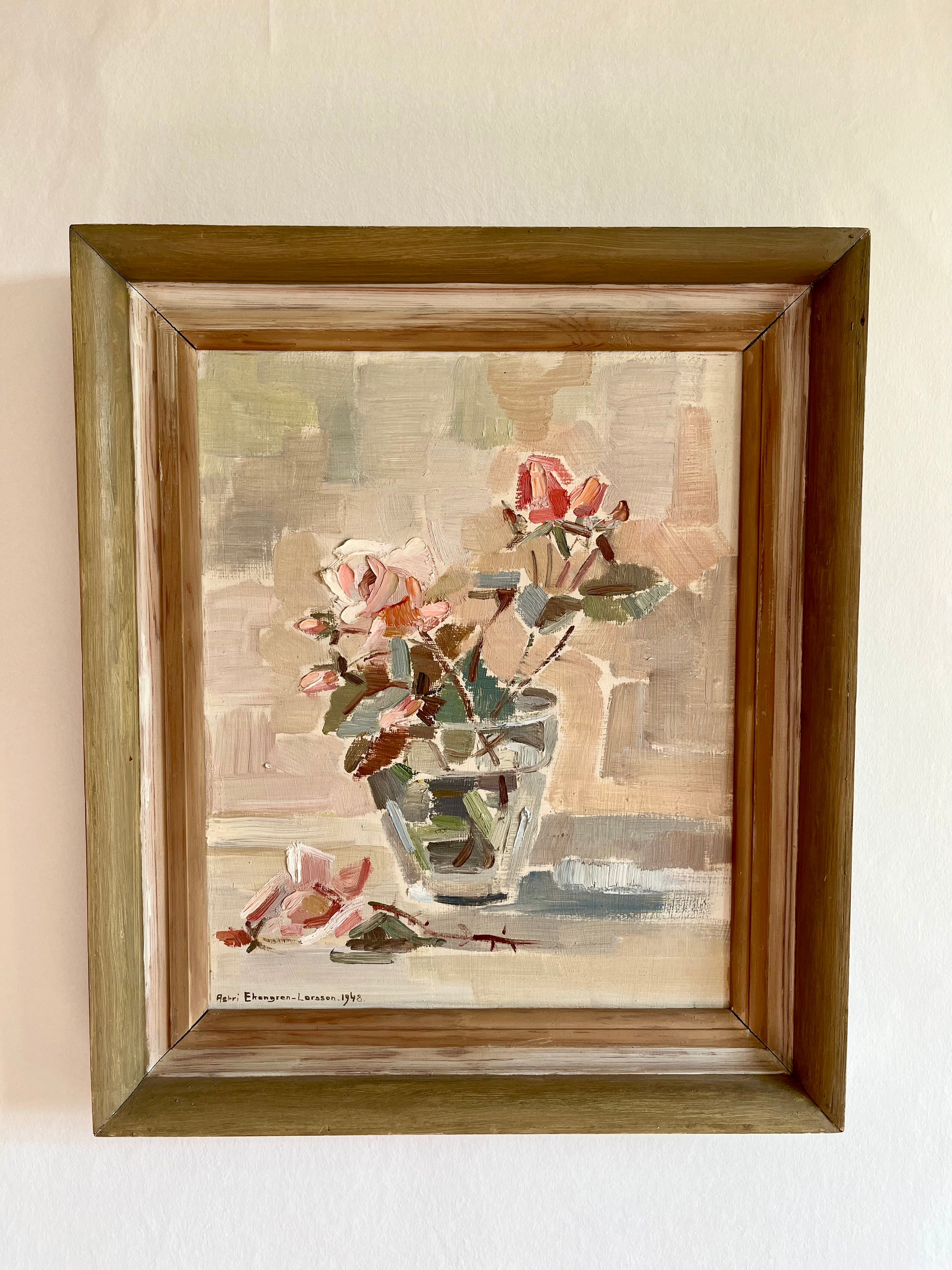 Astri Ekengren-Larsson (1898-1990) originally trained as a silversmith and later turned to painting and visual art. She studied arts and crafts in Moscow, and was a private pupil of Hugo Carlberg, Swedish artist and painter. In 1940 she studied at the Skânska painting school in Malmö. Her works were often exhibited in Hässleholm and Linköping and with the Östgöta art association.